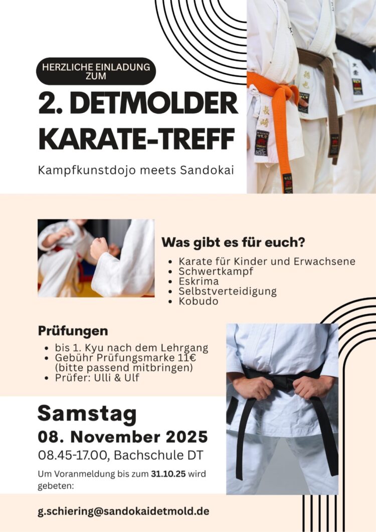 Liebe Vereinsmitglieder, wie angekündigt findet Ihr hier alle Informationen zum 2. Detmolder Karate-Treff am Samstag, den 08.11.2025, den wir gemeinsam mit Sandokai Detmold e.V. ausrichten. Um Voranmeldung wird gebeten bis […]